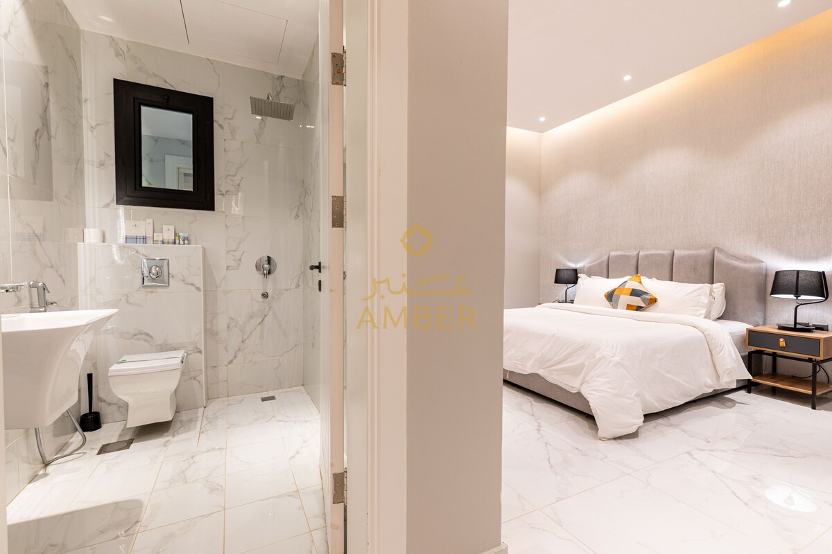Enjoy comfort and tranquility with your family in a premium residence in one of Riyadh’s top neighborhoods. The home features hotel-style beds, a modern kitchen, and a cozy living room. The compound offers a gym and wellness center for men and women, game rooms, a smart market, and a café with indoor and outdoor seating. Ideally located near major events and services. Riyadh Airport: 17 mins Riyadh Boulevard: 5 mins