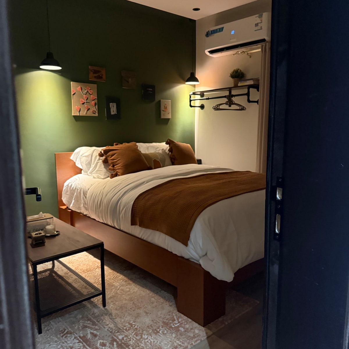 استديو بدخول ذاتي ومسافة ٦ دقائق عن برج المملكة وقريب من جميع الخدمات ويتميز بأجواء دافئة وأنيقة، غرفة بسرير ماستر مثالية للأفراد أو الأزواج الباحثين عن مساحة معيشة مريحة ومناسبة. تحتوي على : انترنت وكاوية ملابس وموقد الكتروني أدوات طبخ مدفأة ملاحظة : لا يوجد موقف خاص