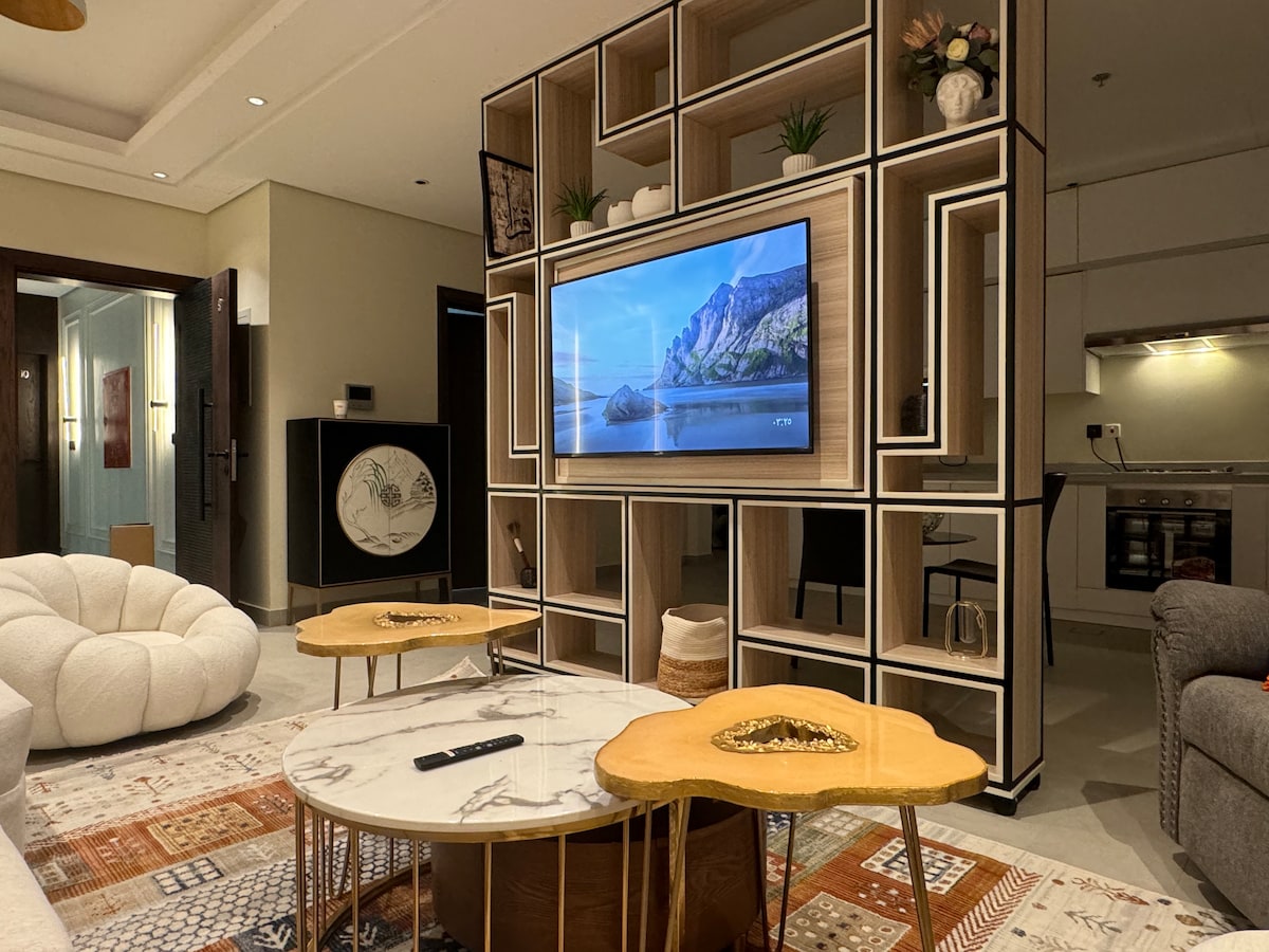 This unique place has a style all its own—designed to offer comfort, elegance, and a touch of luxury. Each room is thoughtfully furnished with chic décor and high-end finishes. Enjoy premium amenities including a Cinema VIPS experience, QLED flat-screen TVs, tea/coffee machines, hair dryers, plush towels, and a complimentary welcome pack. Whether you're here for a short getaway or a longer stay, you'll feel right at home with our modern comforts and personalized touches.