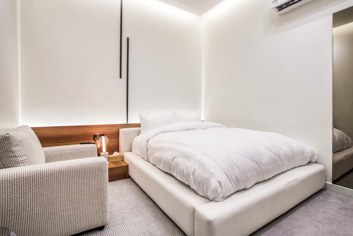 Enjoy a stylish experience at this centrally-located place. With free subscriptions to entertainment platforms such as (Netflix, Osn+, Disney+) to enjoy your staying, with some snacks and soft drinks. Wish to you a lovely experience.