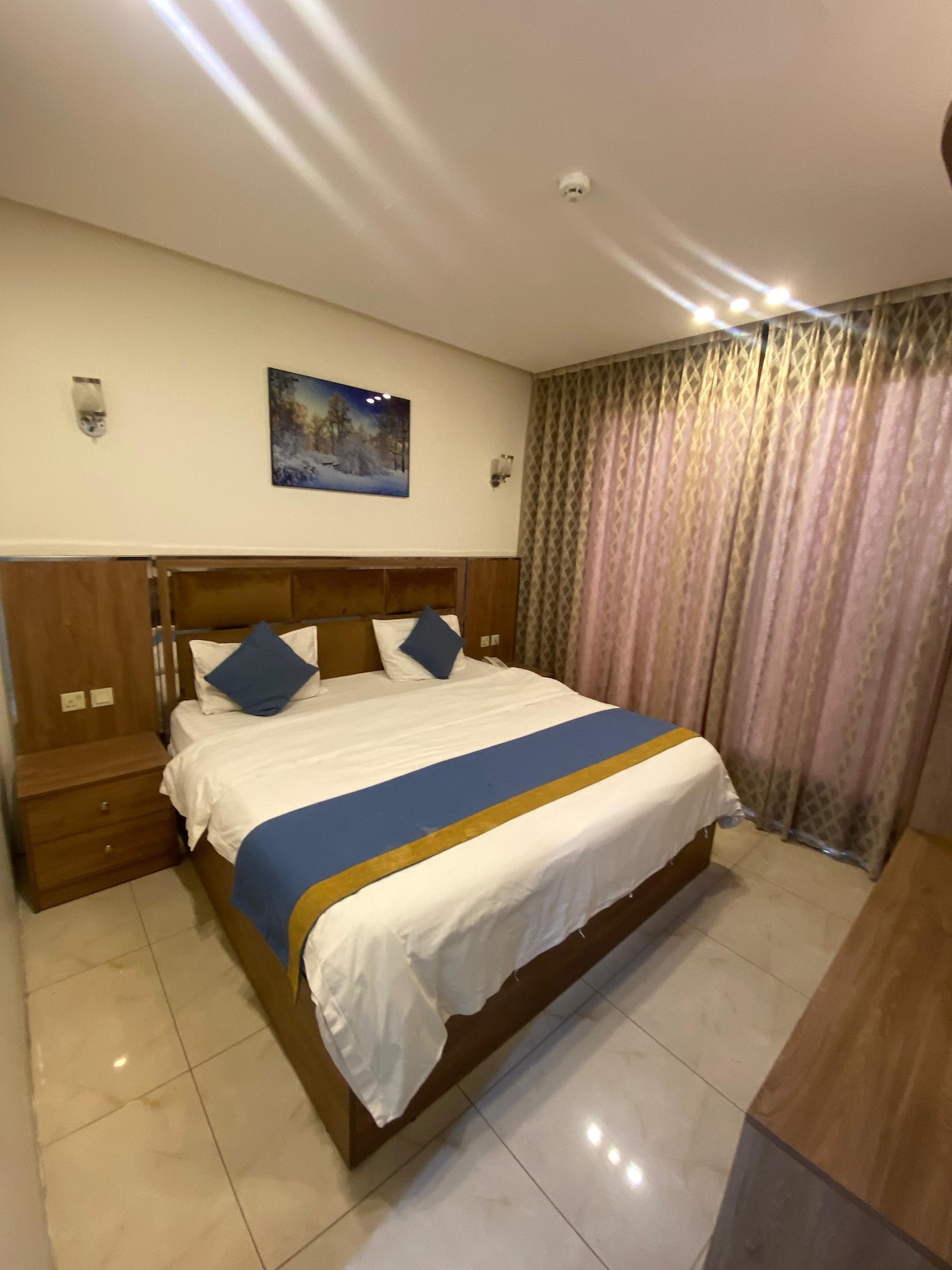 استمتع بإقامة فاخرة ومريحة في شقتنا المصممة بعناية! غرفة نوم مميزة بسرير مزدوج فاخر لشخصين، صالة رحبة للاسترخاء، مطبخ مجهز بالكامل لإعداد أشهى الوجبات، وحمام عصري حديث. شقتنا تمنحك الراحة والفخامة مع كل التفاصيل، لتجربة إقامة لا تُنسى تشعرك وكأنك في بيتك.