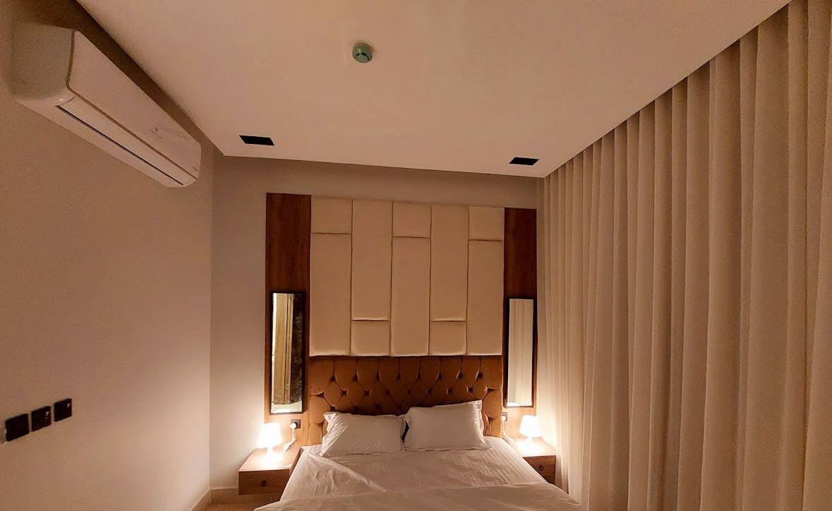 Junior Suite Al Narjis District Riyadh Experience comfort and practicality in a modern hotel setting nestled in the tranquil Al Narjis district of northern Riyadh Prime Location Just minutes from King Salman Road with fast access to King Khalid International Airport and key commercial hubs Suite Highlights: Elegantly furnished for relaxation and ease Perfect for both short and long stays in a peaceful environment