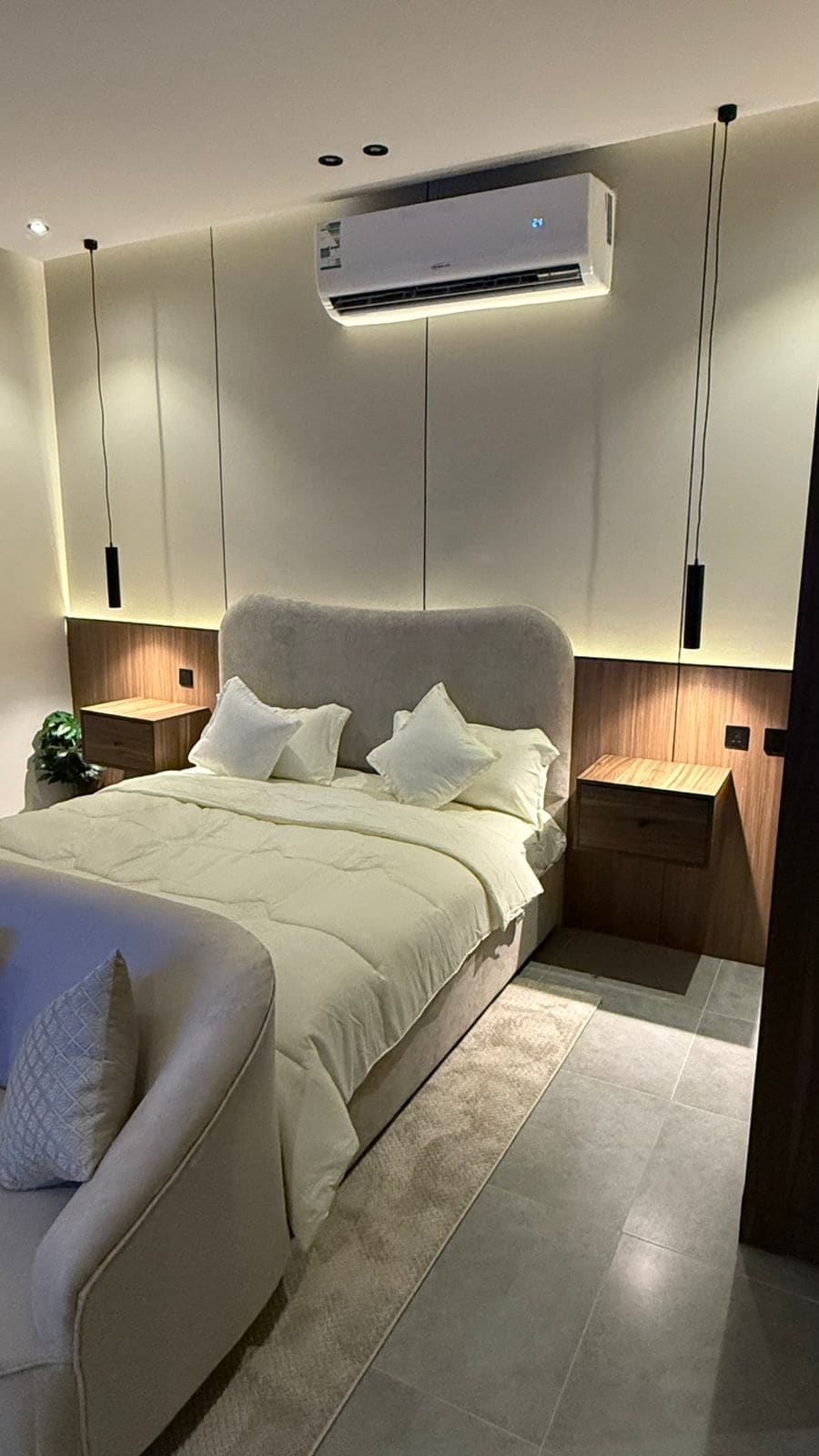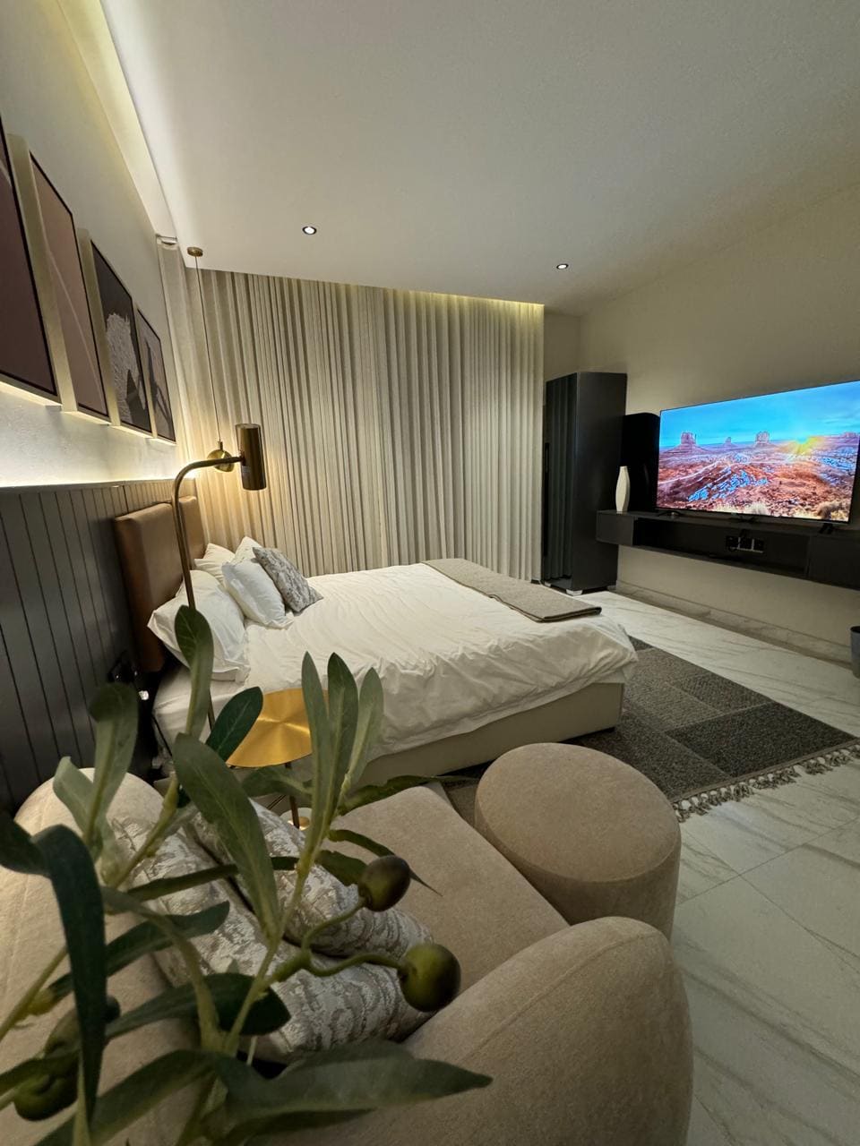 A modern apartment designed for an exceptional stay, located in one of Riyadh’s finest neighborhoods with a stunning view of KAFD. It features an outdoor seating area with a screen and projector for enjoyable evenings. For your comfort, the bed includes a high-quality 14cm extra layer. “We also offer event coordination services for special occasions (including cake and accessories) for an additional fee with prior booking, ensuring an unforgettable experience “