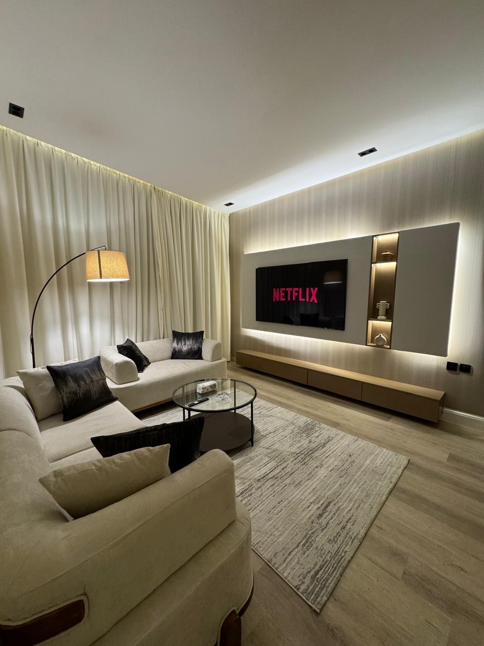 Elegant studio in Al Aqiq District, fully equipped with all amenities, featuring smart entry and a prime location with easy access to Riyadh’s key destinations. 8 minutes from Boulevard 8 minutes from beast land 7 minutes from KAFD 18 minutes from the airport 6 minutes from King Saud University Unlimited High-speed 5G internet available 70 inch screen