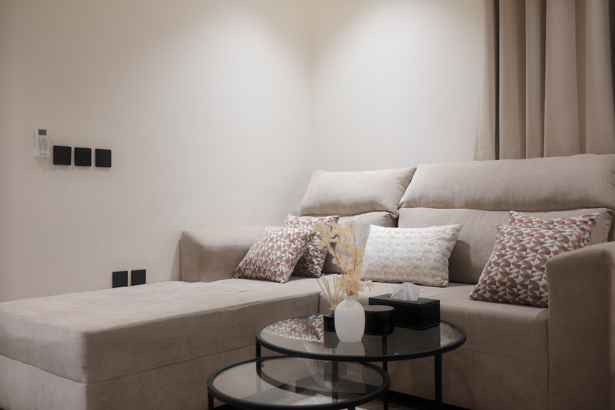 Boho-style retreat in Al Narjis! Cozy 1BR apartment with living area, equipped kitchen, 2 bathrooms, and a 4-seat dining table. Natural plants add freshness, soft lighting and warm tones create a relaxing vibe. Perfect for solo travelers, couples, or short stays. Fast Wi-Fi, AC, and parking included. Enjoy comfort, style, and a peaceful Riyadh stay in a brand-new, inviting space.