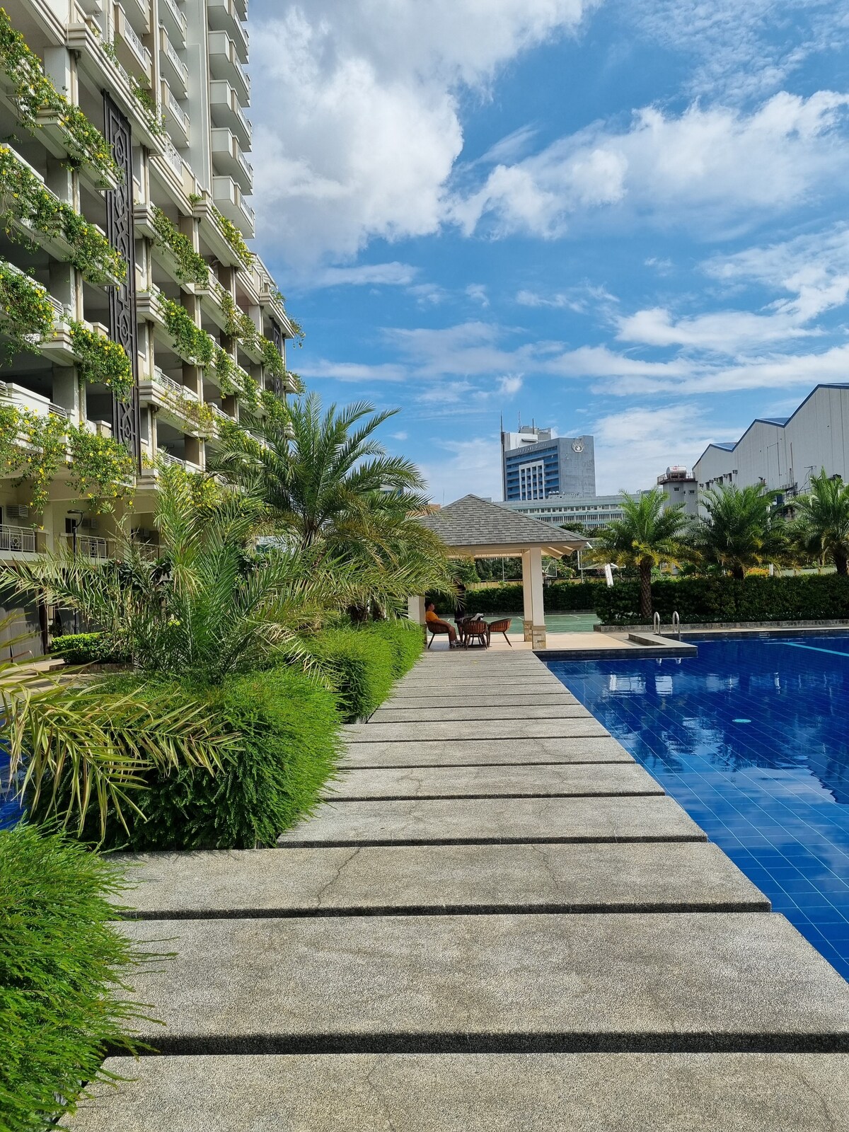 Located on the 39th-floor penthouse of Vista Taft Residences, steps from Vito Cruz LRT and De La Salle University, with groceries, dining, and banks nearby. Ideal for a quick Manila stay, centrally located near the airport, malls, and key attractions. Enjoy smart home features, seamless self check-in, keyless entry, a minibar, a plush 12-inch hotel-quality bed, plus access to the gym and swimming pool.