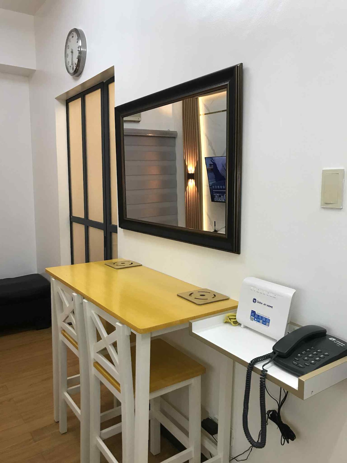 Have fun with the family in this bright & stylish place. 1) Squeaky clean, lofted 40sqm. 1BR 2) Clubhouse, pool, basketball court, open spaces 3) Professionally designed unit 4) 24hr security 5) condo VILLAGE w/ 15+low rise buildings 6) home amenities: coffee maker, rice cooker, oven toaster, fridge, TV, landline, Cable, WIFI, Airfryer, Microwave, Stove, heated shower, bidet, smoke al 7) well-lighted workspace/study 8) 2ACs, split &window 9) 2 beds(pullout) full double/single. NO QUEEN BEds