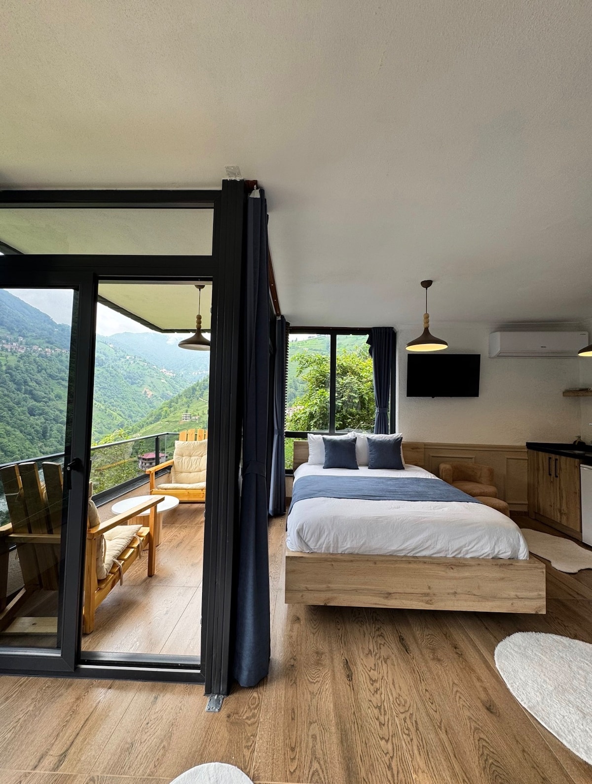 Rize’nin büyüleyici doğal güzellikleriyle çevrili bungalovlarımızda, konforlu ve keyifli bir tatil deneyimi sunuyoruz. Altı adet zarif bir şekilde dekore edilmiş bungalovlarımız, size hem rahatlık hem de eşsiz bir atmosfer sunmak için özenle tasarlandı. Modern olanaklarla donatılmış bu odalarda, doğanın kalbinde Rize’nin muazzam manzaralarının tadını çıkarabilir, doğayla iç içe bir kaçış yapabilirsiniz.
