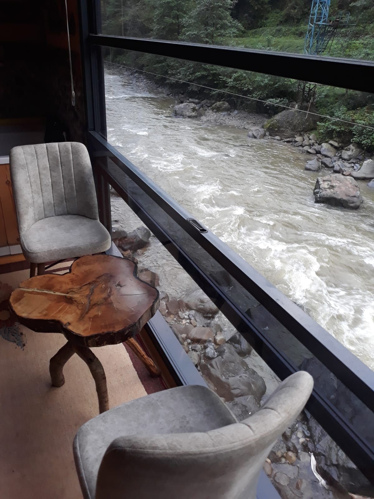The full collection of the world-famous Ayder Plateau is located right across from the waterfall, right above the festival! A suite with a fireplace and a jacuzzi, with a ceiling that opens to the sky...