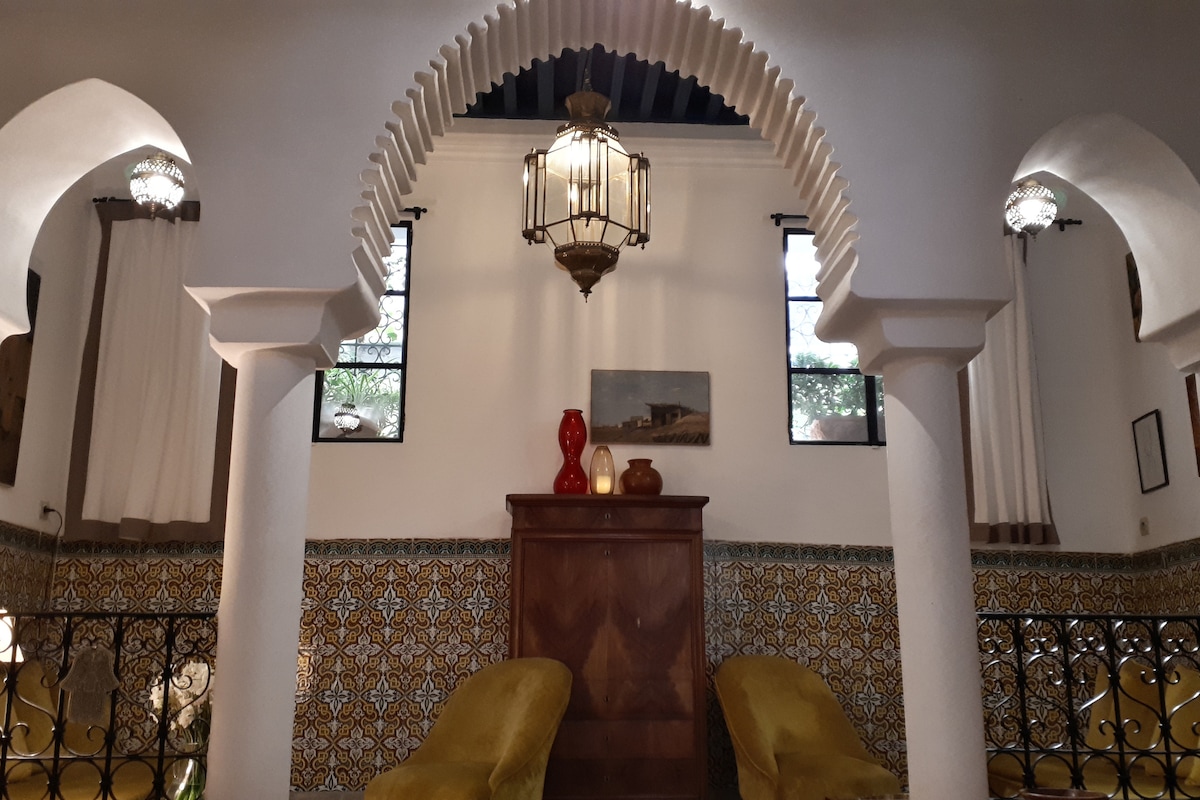 C'est une splendide maison de style Hispano-mauresque, des années 30. Élégante, spacieuse, inondée de lumière et de soleil. Sans vis à vis, elle domine la Casbah, la baie de Tanger, le Détroit, Gibraltar et l'Espagne : le face à face avec le site et les éléments est ébouriffant. Dépaysement total : déjà l'Orient, encore l'Europe. De cette maison vous rayonnez partout : la médina, la ville et les environs : plages, resto, balades.