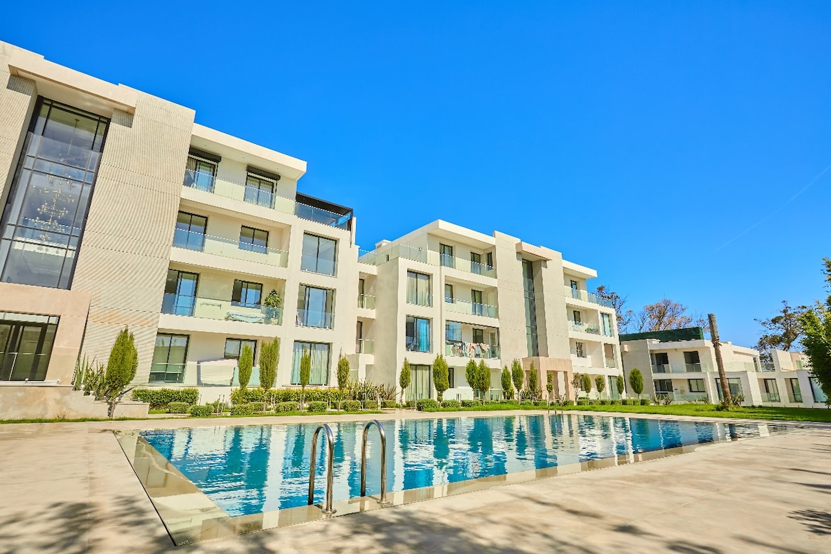 Discover peace and elegance in this spacious luxury apartment nestled in the hills of Tangier, near the famous Rmilat Park. Surrounded by a beautiful forest, the residence offers a perfect escape for those seeking nature, comfort, and privacy. Highlights: ✔Elegant living room ✔Fully equipped modern kitchen ✔Access to a shared swimming pool surrounded by greenery ✔A few minutes from Rmilat Park, the Cap Spartel Lighthouse, and Achakkar Beach ✔Private Garden ✔Exterior security cameras