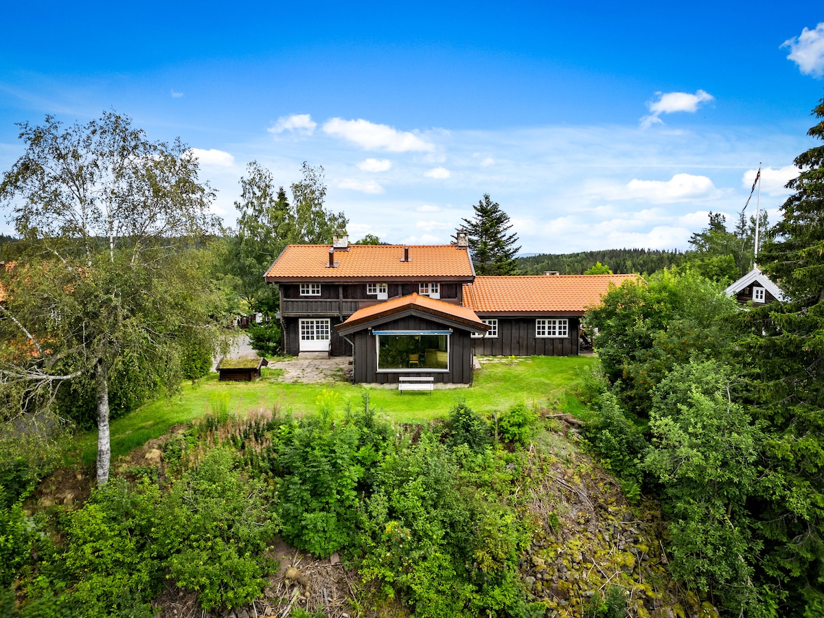 Spacious, hand crafted, traditional log house on the outskirts of Oslo. Search for "Oslo Log House" on YouTube. 20 minutes from down town by car or 30 minutes by bus/subway. Located within the ski resort, you may ski-in and ski-out in the winter. Parking included. Wifi included. 4 lift passes included. The house was built in 1930 and was upgraded in 2014-2017 to accommodate 16 guests. There is plenty of room for everyone! Attention: The ski resort is not able to help with transportation.