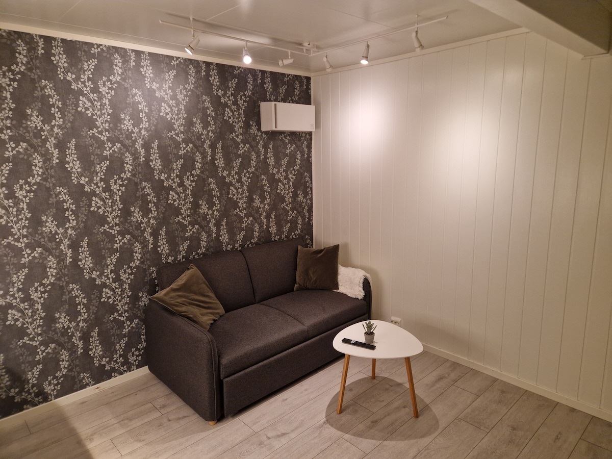 Sokkeleilighet med egen inngang, soverom, stue, dusj, badstue og toalett. I stue er det kjøleskap, mikrobølgeovn og vannkoker. I stue er det også sovesofa som kan benyttes som seng. For allergikere gjøres det oppmerksom på at det er hund i etasjen over. Fem minutter å gå til sentrum, med busstasjon, butikker og restauranter. Ti minutter til Finnmarkshallen, UiT og turområder. Parkering for bil på eiendommen. Sykkel og motorsykkel kan parkeres i låst garasje. El billader i nærområdet.