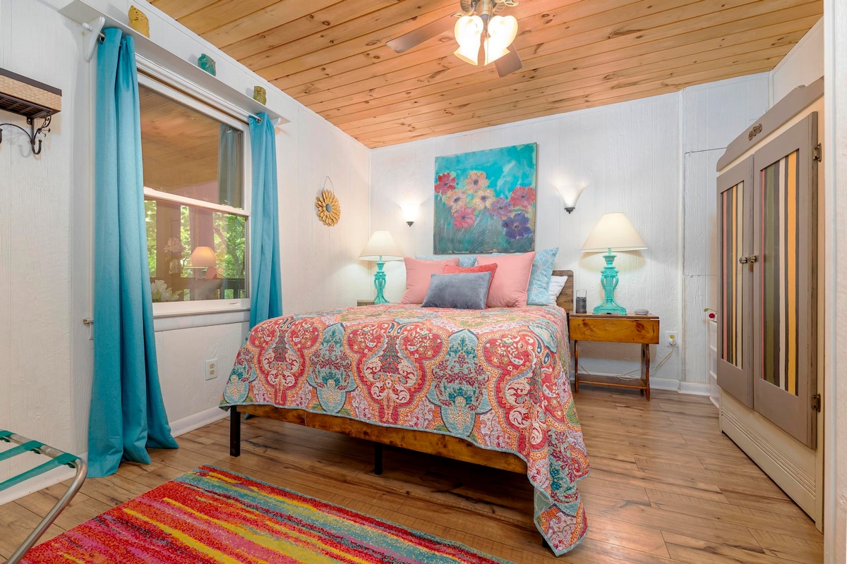 Welcome to Rustic Ridge. Located in the Appalachian Mountains up a holler in Roan Mountain Tennessee. You will enjoy all the porch rocking AND marshmallow roasting that you can stand. Just sit and enjoy the sounds of the babbling brook while you relax by the fire pit or take a hike on our private trail. With deep woods views and changing leaf color this is truly a treasure. Pet friendly with a $35 fee. AT hikers are welcome with free local pick up and drop off with booking. Come enjoy!