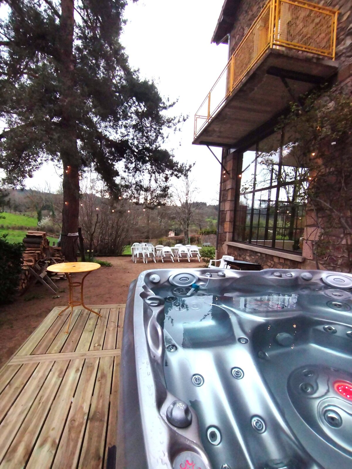 Venez vous ressourcer dans ce beau chalet en bois agrémenté d'une terrasse de 35 m2 avec jacuzzi et une vue incroyable sur la campagne environnante. A moins de 4 km après la sortie d’autoroute des Salles (42), Le Chalet se situe entre l'historique village de Cervières et le village de Noirétable avec son Casino de jeux, son plan d’eau et tous les commerces de proximité. Je vous invite a suivre Chalet Yolo @chaletyolo
