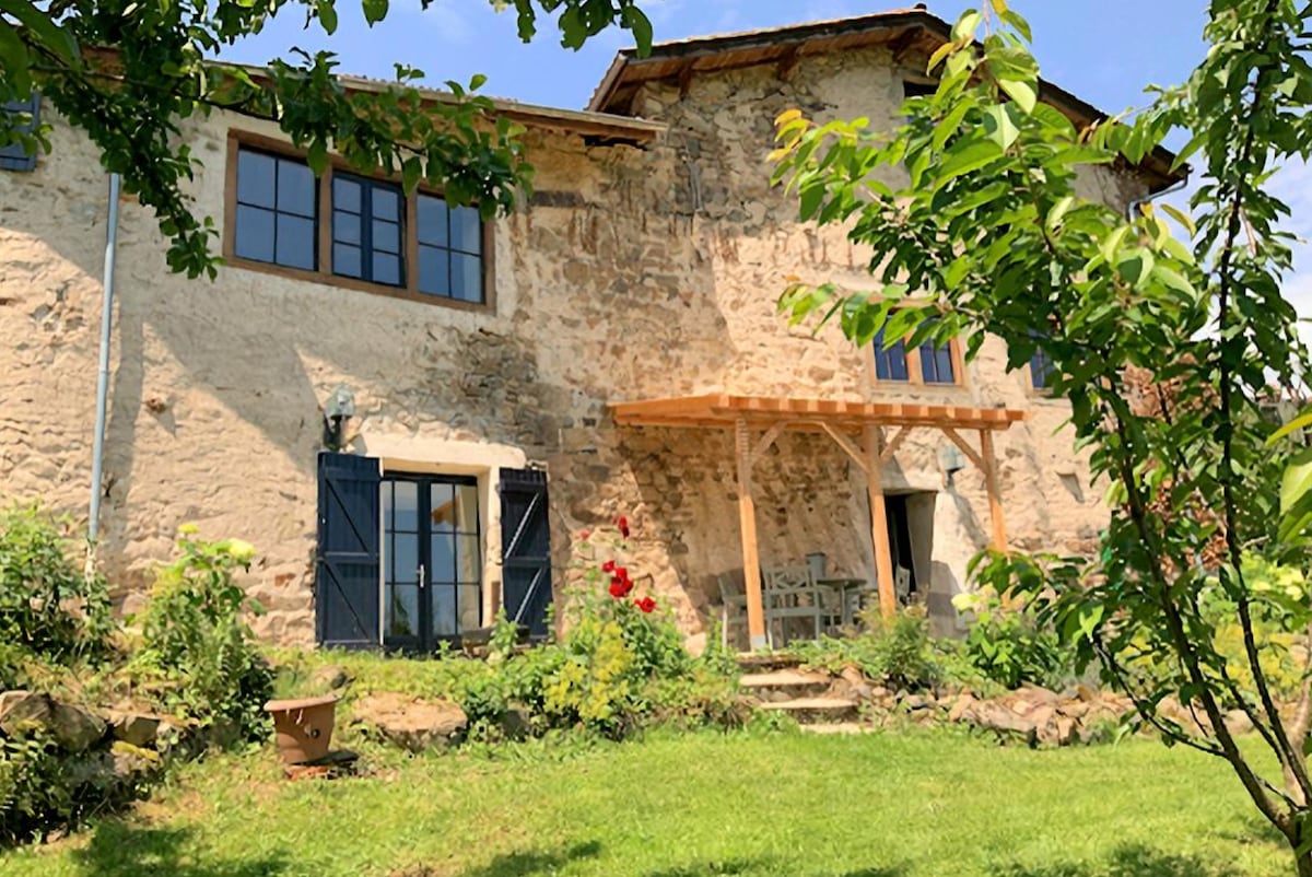 Cette charmante ancienne et atypique maison de campagne vous séduira en toute saison: L'été, son magnifique jardin avec sa piscine au sel chauffée, ses différentes terrasses sans vis à vis, le calme et une superbe exposition. L'hiver, son spa extérieur, son intérieur chaleureux aux volumes originaux, ses équipements modernes. Sa situation à 1h20 de Lyon, 5 minutes de la gare de Chauffailles, d'un bourg et d'une zone commerciale, en fait un lieu préservé et au calme absolu, mais pas isolé!