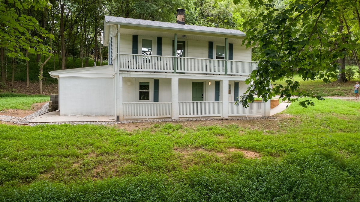 Magic is the word most people use when they visit this hidden gem. Built in 1939 as a fishing cabin by a gentleman who incorporated box cars as rafters and beams, dates still visible since removing the attic. By far the best place I've ever lived. I decided to share it with others who love to explore, who love listening to the voice of the creek or who come just to sit on the porch high above the creek with a spouse, friend, family, or alone. For the best sleep, open the bedroom window!