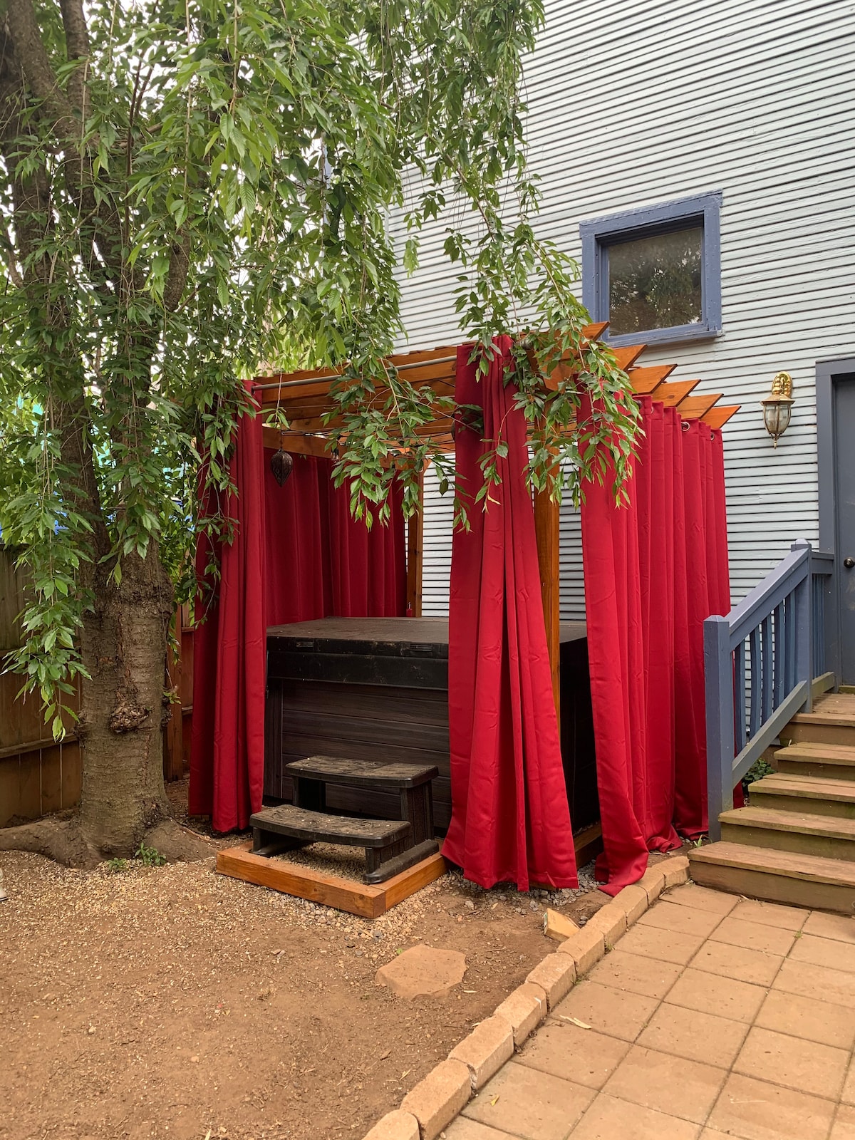 Located across the street from a popular bakery and bistro and walking distance to downtown, you will be close to everything while able to enjoy a historic building that stands out from others in the area with its unique architecture and history. There are two good sized bedrooms, a well stocked kitchen, and pleasant living and working spaces. In addition you will have access to a shared space and backyard that includes various recreation options including a fire pit, hot tub, and sauna.