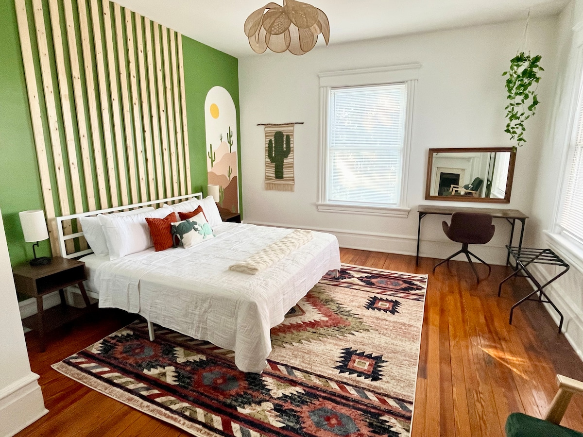 Welcome to The Commonwealth “where majority rules… but the bed is King” A beautifully updated 1BR in a classic brick walk-up near Main St overlooking Roanoke College. We blend original architecture with fresh design with every modern comfort needed for a short or extended stay. If you’re here for school, business, to explore downtown Salem or the nearby mountains, this is your home base. We only ask that guests govern yourselves accordingly…one bed…indivisible, with liberty and pillows for all.