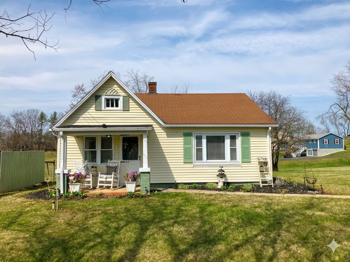 PLEASE READ ALL the information about this listing . The Shepherdess Cottage" is a sweet place to visit. It has view of Cahas Mountain in Franklin County, Virginia. This cottage has 2 bedrooms and a bath. A large kitchen open to great room. Total space is 800 sq.feet. (Not including huge porches) This home is in rural setting. There are other houses around that can be seen . The road can be busy at certain times of day. The house used to be a one room school house in early 1900's.
