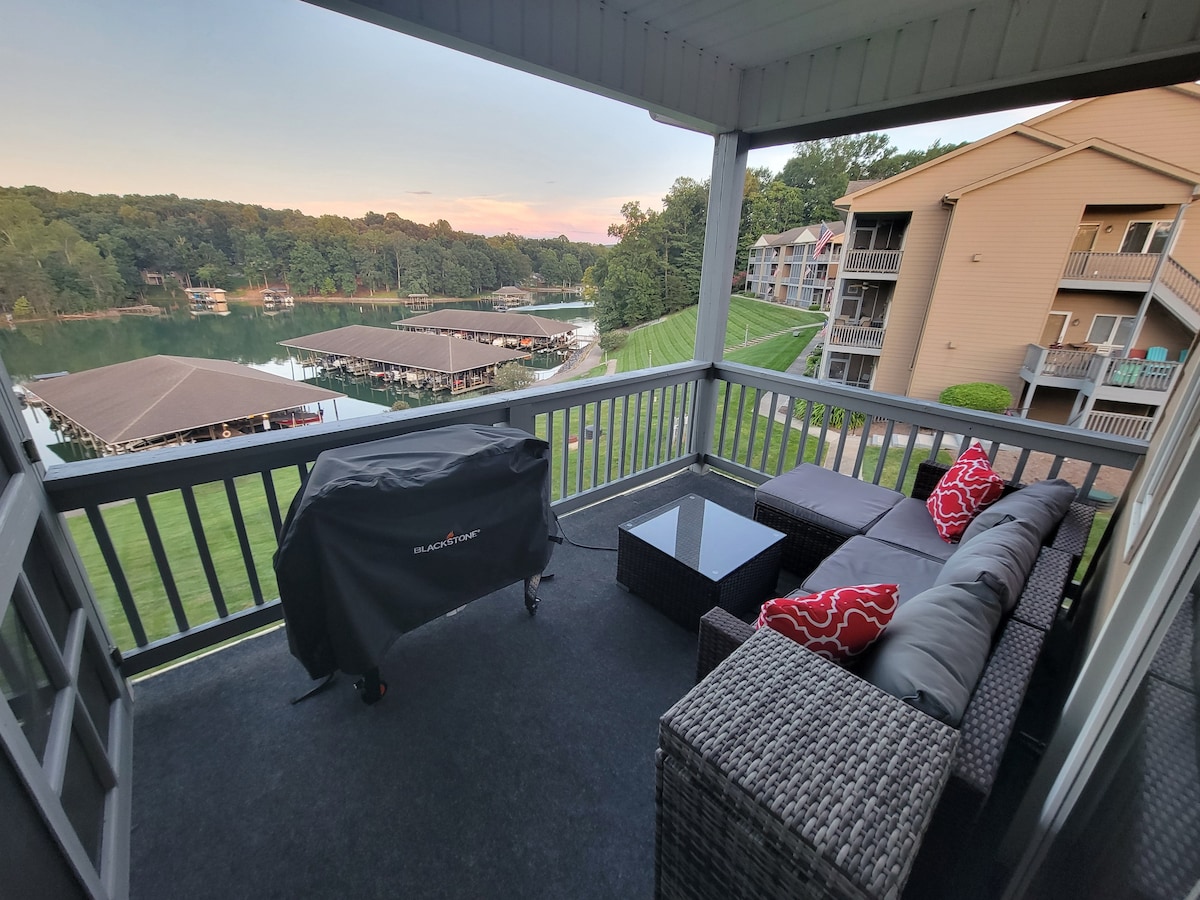 Come to the lake! This spacious one bedroom top floor end unit is uniquely located between Napoli by the Lake restaurant and large outdoor swimming pool. Fantastic views of the lake from the large deck! Sleeps 2 adults and 2 small children under three. The following amenities are provided during your stay (Subject to season and repair): 2 Outdoor Pools Exercise Room Boat & Jet Ski Rental 1 Indoor Pool Hot Tub Courtesy Boat Slips Beach & Boat Launch Area Tennis & Pickleball Courts