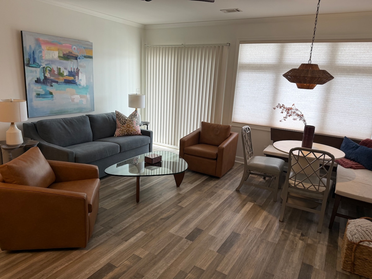 Formally a garage, this property has been transformed into a trendy two bedroom home! Located on premises at The Midtown Lofts, you can enjoy all of the amenities the property has to offer. Pool, fitness center, beach volley ball court, fire pit and the private movie theater. Pool is seasonal. The large windows allow all of the natural light you want! Two full-size beds. There is also a work space for those of you who are traveling for business, but please try to have some fun as well!
