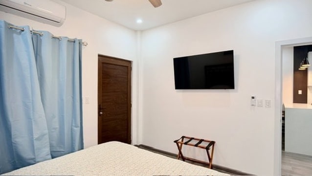 Disfruta de una estadía cómoda y privada en esta habitación con cama king, baño privado, clóset, aire acondicionado y TV. Ubicada dentro de un apartamento en Sandy Bay, en una comunidad privada con acceso controlado y seguridad 24/7. Incluye estacionamiento privado y acceso a la piscina comunitaria. A solo 4 minutos caminando de la playa y del Club de Playa Sol y Mar, con fácil acceso a West End, West Bay y supermercados. Ideal para parejas o viajeros que buscan tranquilidad y comodidad.