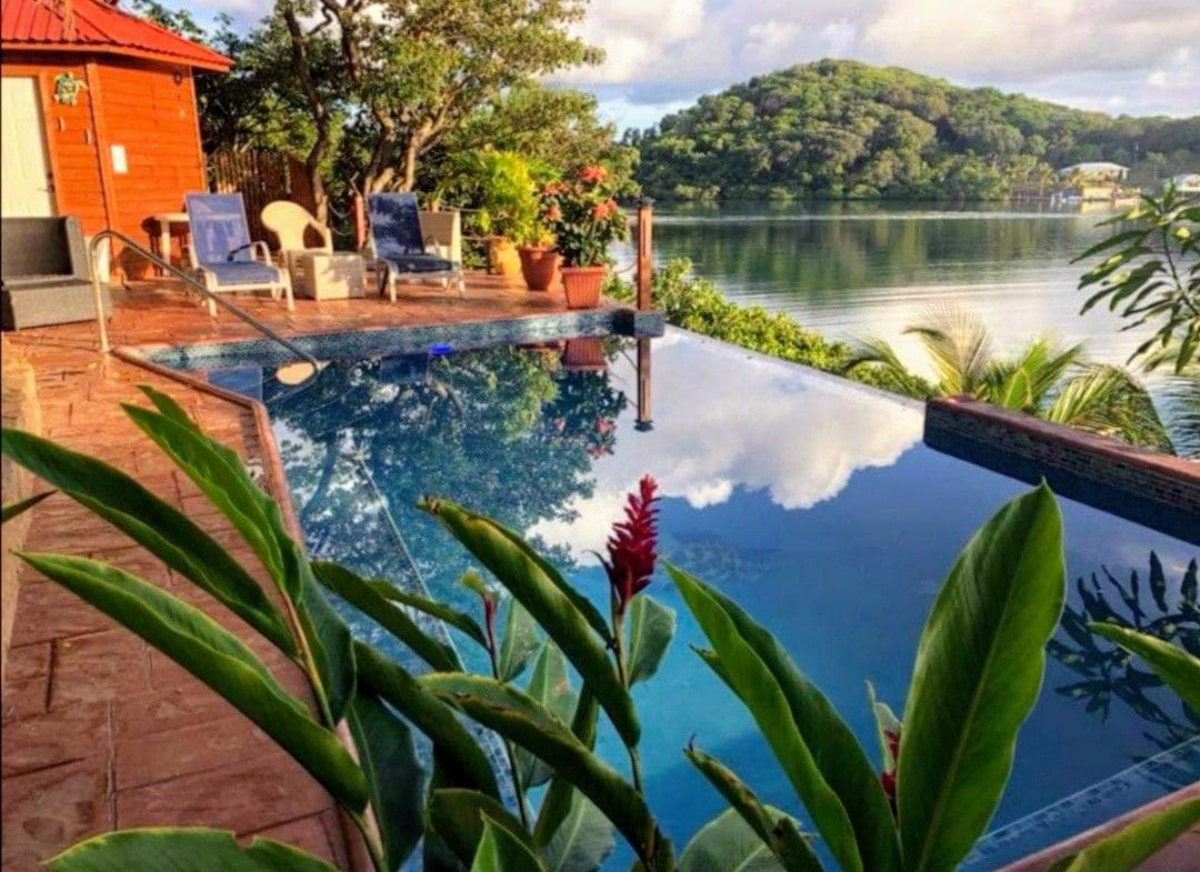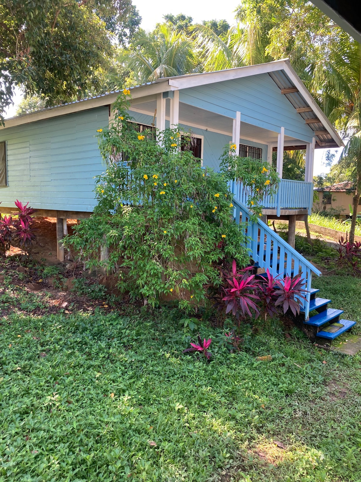 This cozy casita (studio) has a warm tropical feel. It's near the pool but not too close. It has a fully equipped kitchenette with everything you need to prepare meals and keep you're drinks cold. The bathroom has a large shower and plenty for room you to get ready for your night in West End. Sip on your morning coffee on your private deck and watch the wild macaws fly in for their morning visit. The lush jungle is all around you with the breezes to keep you cool while you relax in the hammock.