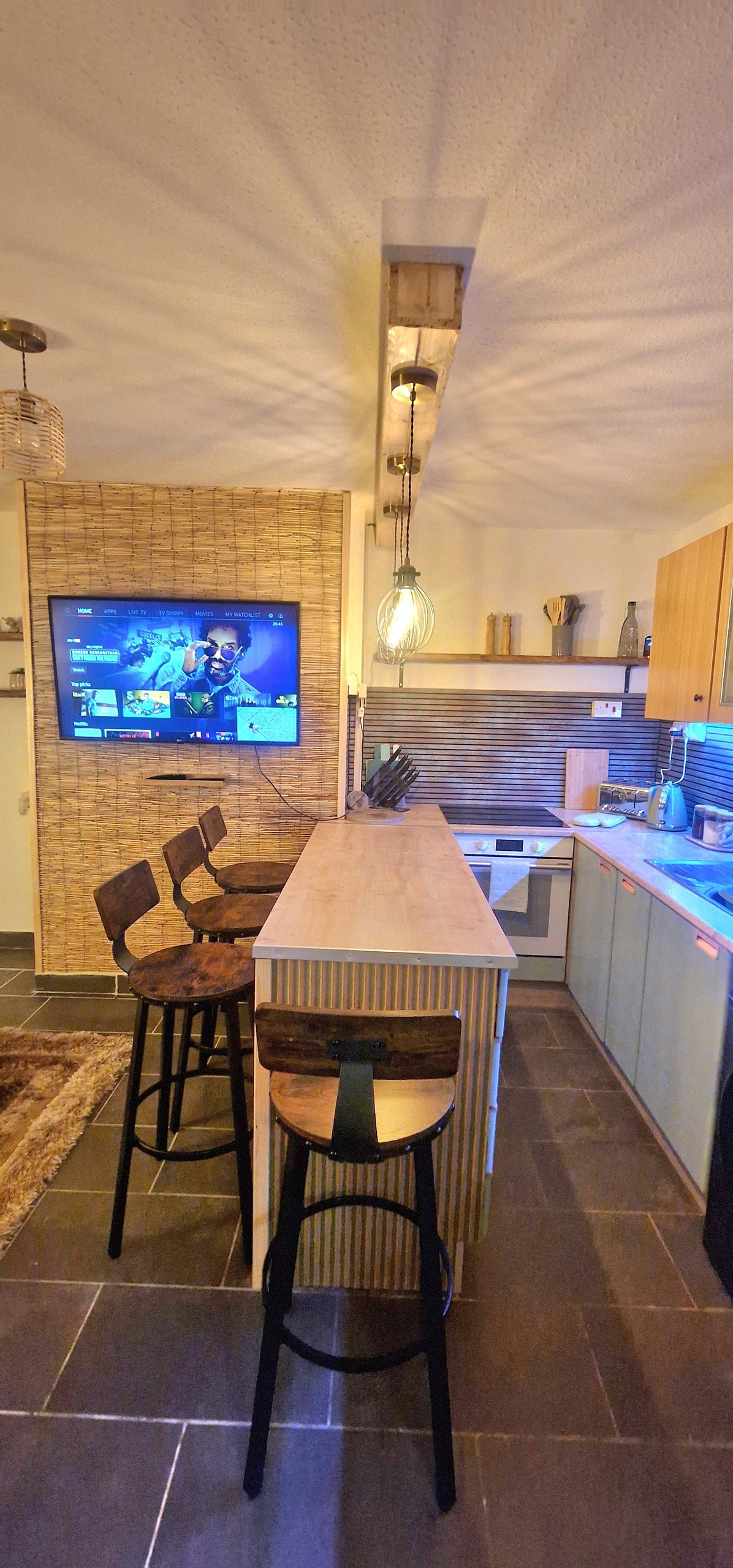 Our outhouse at the back of our garden has been lovingly transformed into a cosy, modern studio apartment. With underfloor heating, large sofa's & kitchen /breakfast area it has everything you want for a short or long stay! Separate entrance also makes it private so you can come and go as you wish. If you do want to go ahead and book, please check out our house rules first.