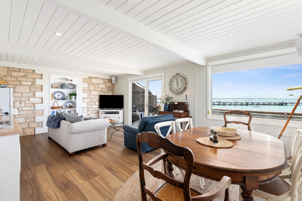 The perfect ocean front large apartment for a couple or single. Located right on the beach, beside the jetty overlooking Rivoli Bay, guests at Harbour Masters Apartment enjoy privacy but also close proximity to the town centre of Beachport - a short and easy stroll away. Watch and hear the gently rolling waves or the comings and goings of boats and people walking the jetty - the second longest in South Australia at 772m. Recently renovated and refurnished, this apartment is truly one of a kind.
