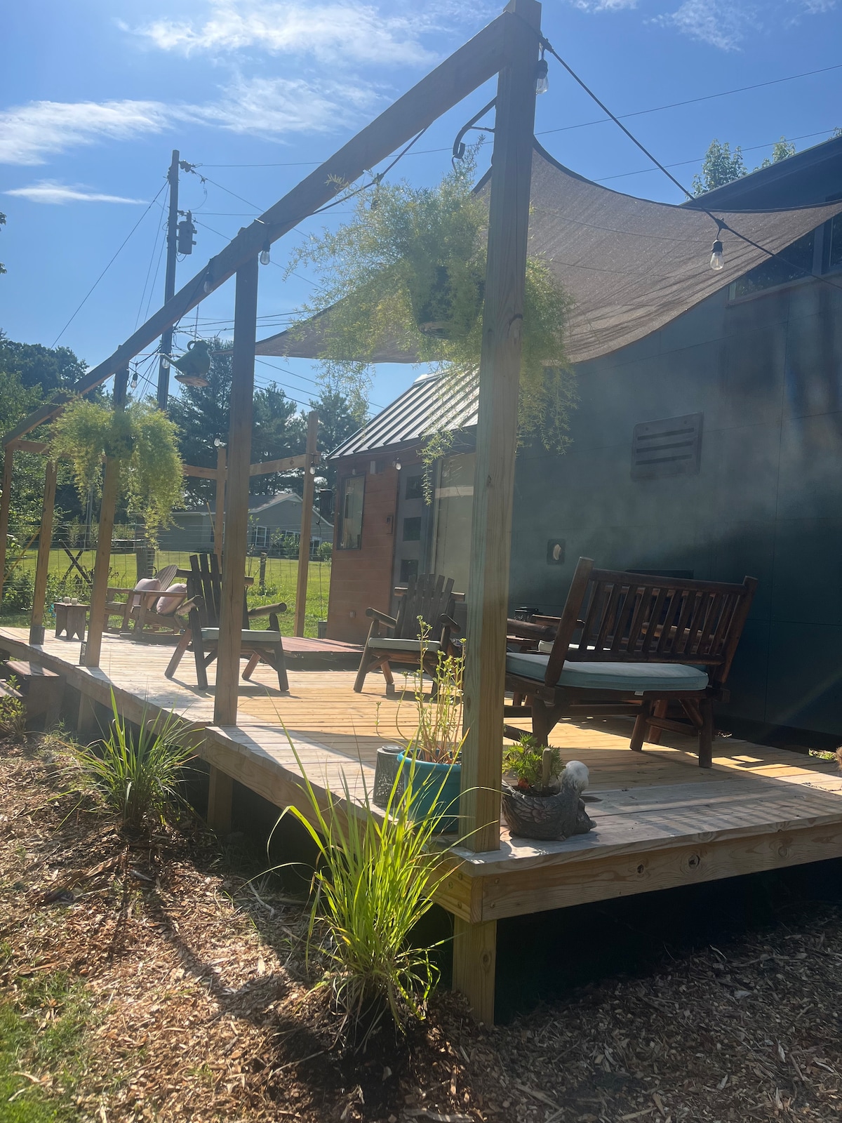 Reconnect with nature at this unforgettable escape. Built in 2017 by Tru Form Tiny, this Tiny travelled the country for 2 years before relocating from SoCal to TN in 2019. I designed the home with light colors inside to reflect my love of the beach, while the exterior is a nod to a cozy cabin. Being an avid music lover, the walls are decorated with show prints from some of the shows I've attended. I've even hosted some live shows here on the property - and on the deck of the Tiny House!