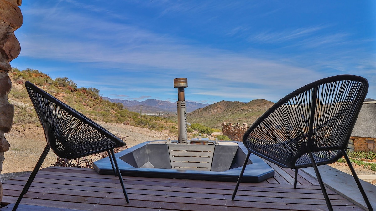 You'll love this unique and romantic escape on the farm ,nestled deep in the mountains of Pietersfontein (Montagu)with lovely mountain views from your hottub or a fireplace at night while touching the stars.This unique house is situated on a working farm where earth meets stars and life stops for a while.