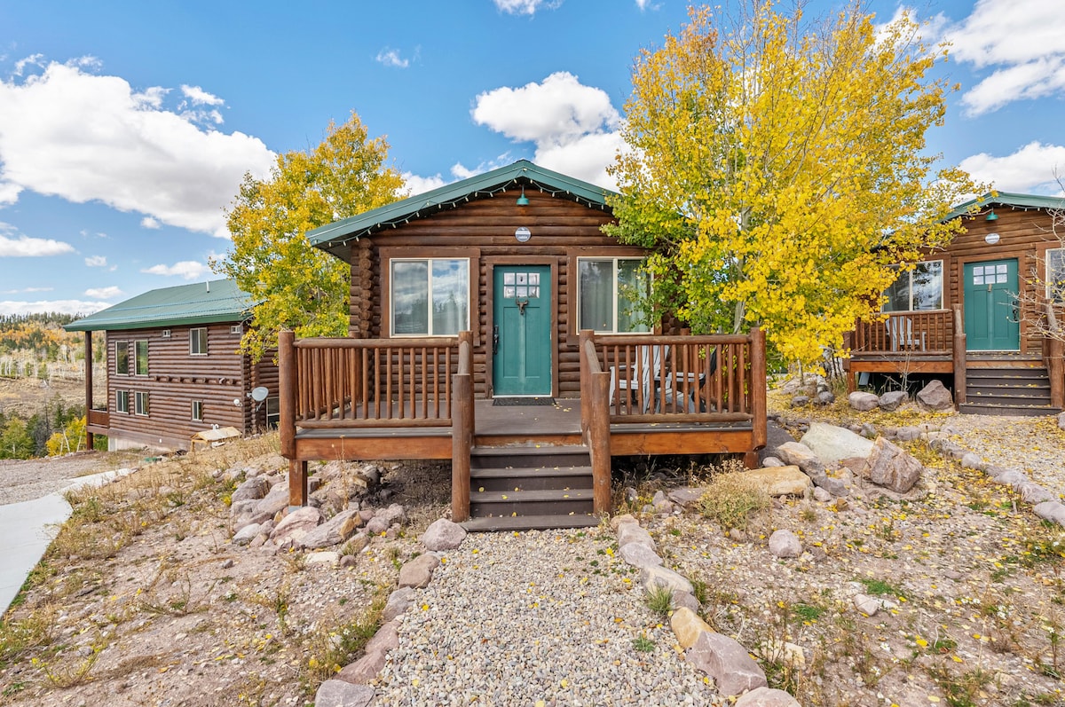 Come join us on the beautiful Hatch Ranch, located 5 miles outside of Randolph, Utah. We are right at the base of the Crawford Mountains. You will feel as though you have stepped back in time when life was simpler. Our cozy 16' X 26' cabin sleeps 4, with 2 queen beds, one on the main floor and one in the loft. In the kitchen we have a coffee bar, microwave, and mini fridge. Outdoors we have a front porch, propane firepit, picnic table and a grill.The cabin is ideal for a couple get away.