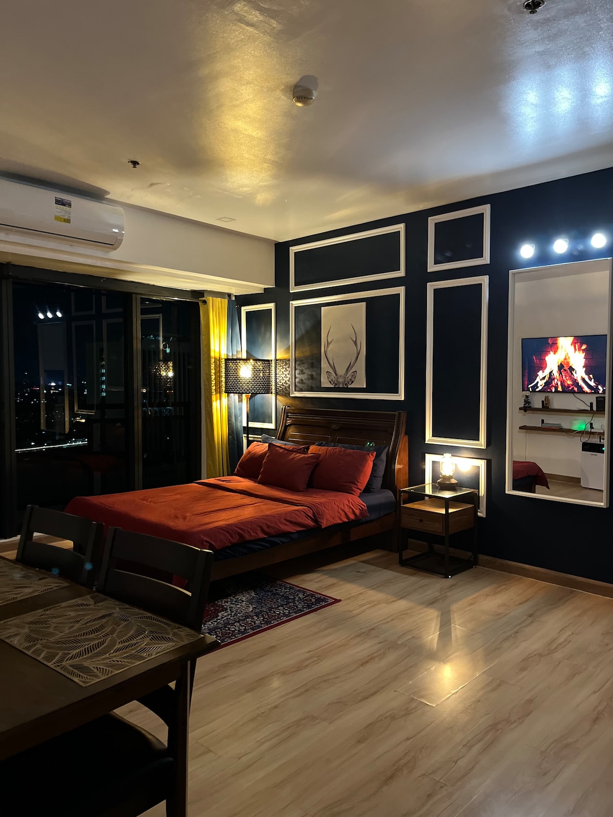 Looking for staycation or monthly stay? Relax in a cozy furnished studio with a "Breathing city view" Ideal for solo travelers, couples, or digital nomads! The place surrounding by dozens of restaurants, lively bars and live music at night, 2 minutes walk to Robinsons mall, within close reach to PGH, top universities, Luneta Park, Dolomite Beach and US Embassy. Balcony with city views WiFi and basic cable Android TV.