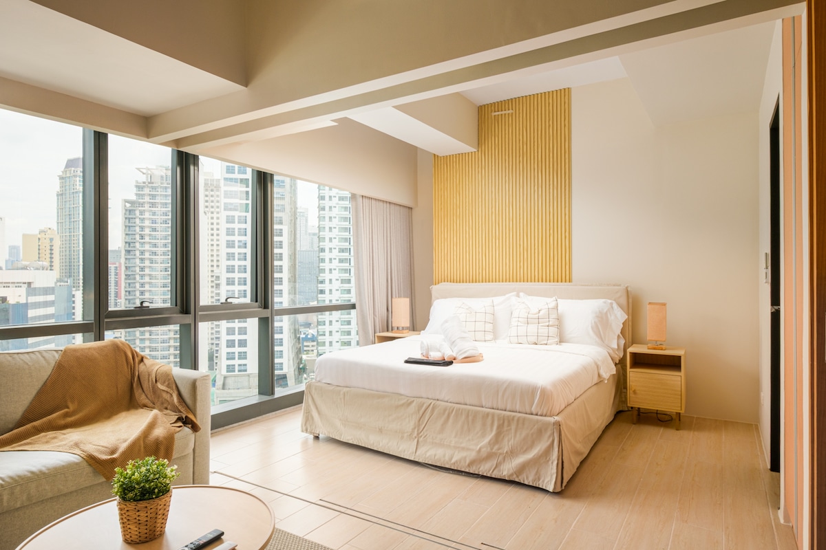 宽敞的豪华马卡蒂单间公寓,可使用泳池 + 景观