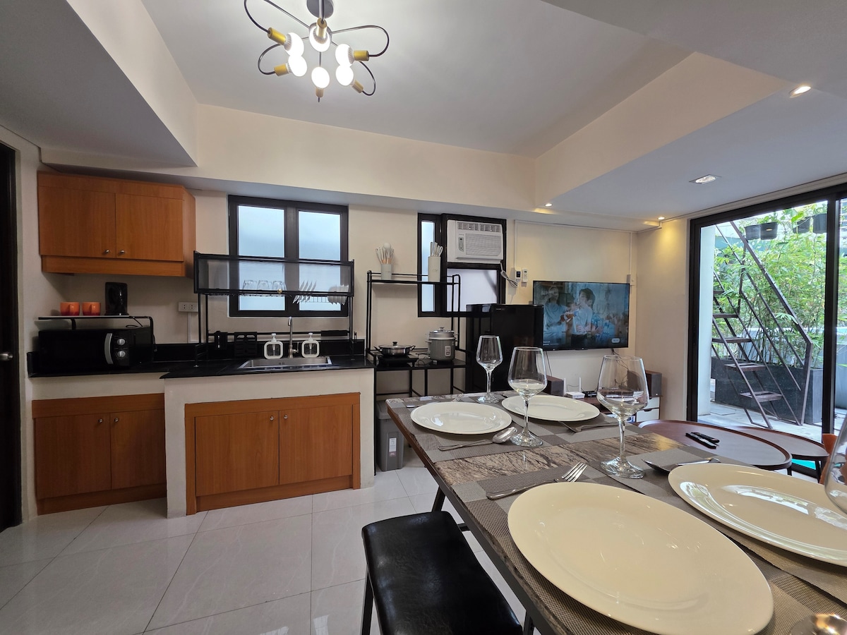 Perfectly situated in the heart of the Poblacion, Makati Restaurant and Entertainment District, our unit is located on the 2nd floor of a boutique condo building w/ 24 hour security. Our 1br boasts a modern Indonesian, Balinese interior and amenities including a 55" TV, Netflx, 550 Mbps, with full kitchen. Walk to nearby bars, casual restaurants, and fine dining. Experience art and culture! The perfect destination for couples, solo adventurers, a business traveler, short trips, and vacation!