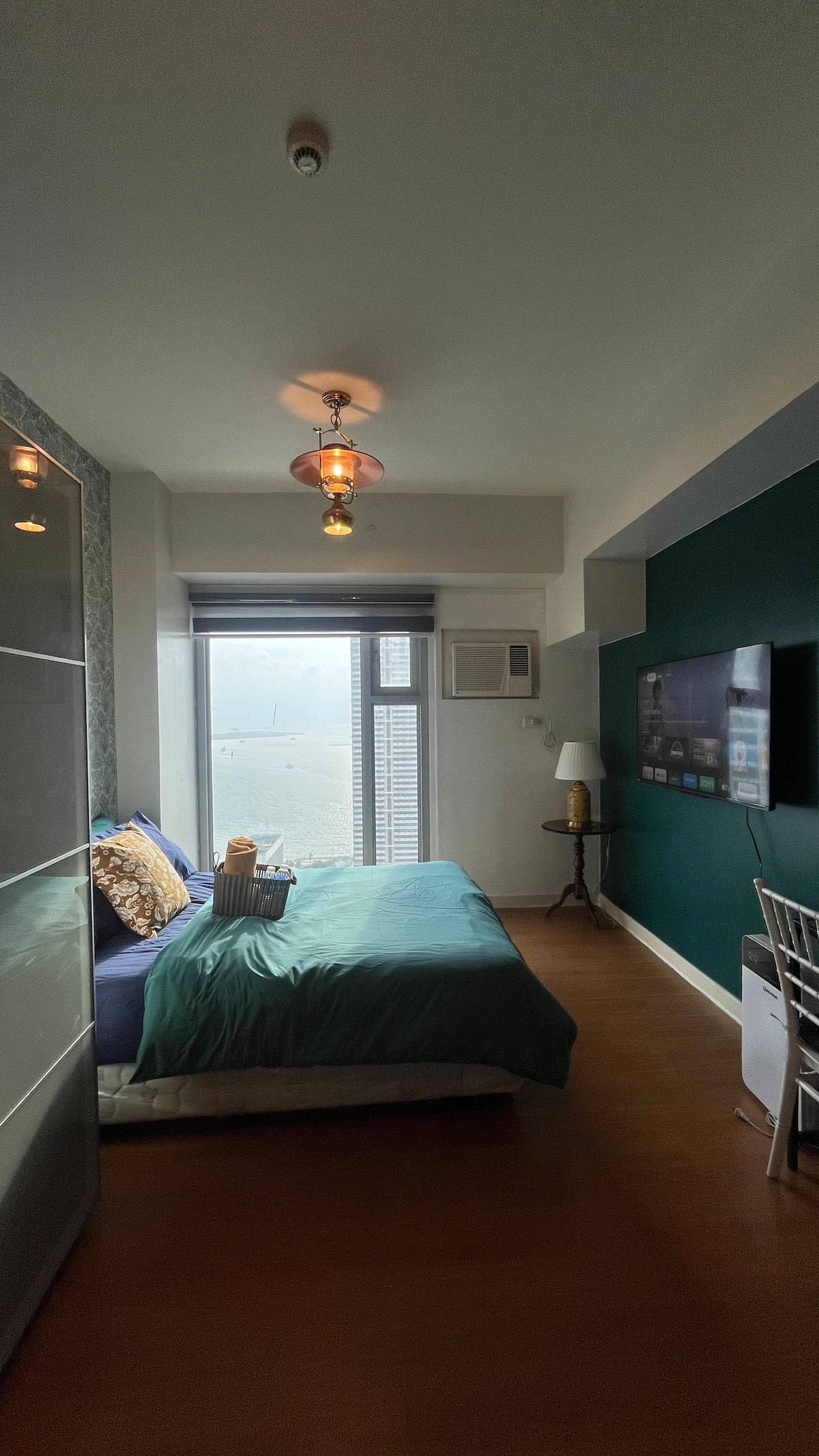 The unit is in Birch Tower, Floor 47. View is fantastic. Room is a 24sqm studio type with a balcony above 160 meters from the street. You can use the swimming pool, gym and sauna. Room has a silent split type aircon. 65" curved smart 4k TV with Netflix and other movie apps to ensure you can relax and enjoy watching your favorite movies. Its better than you expect. Security 24/7. The tower is 50 meters from Robinson Place Manila, a huge Shopping Mall. Manila Bay is 10 minutes away by walking.