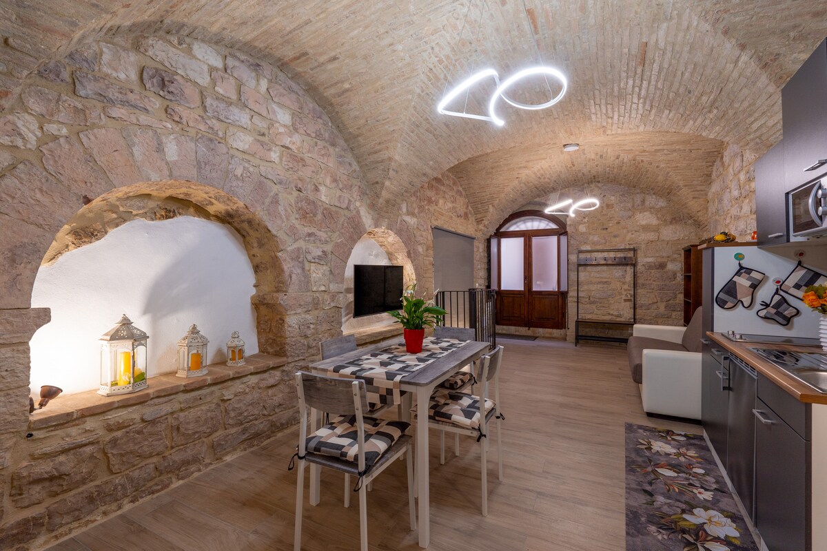 For your stay in Assisi, choose the best relax! A recently restored apartment in a building from the 14th Century, in a very quiet alley 150 mts away from the main square and 900 mts away from the Basilica of Saint Francis. Everything close at hand, without giving up on comfort! Independent heating system, A/C, free fast Wi-Fi. Kitchen with dishwasher, boiler, toaster and microwave. Just 50 meters from the elevator connected to the bus terminal. A rare free private parking only 500 meters away!