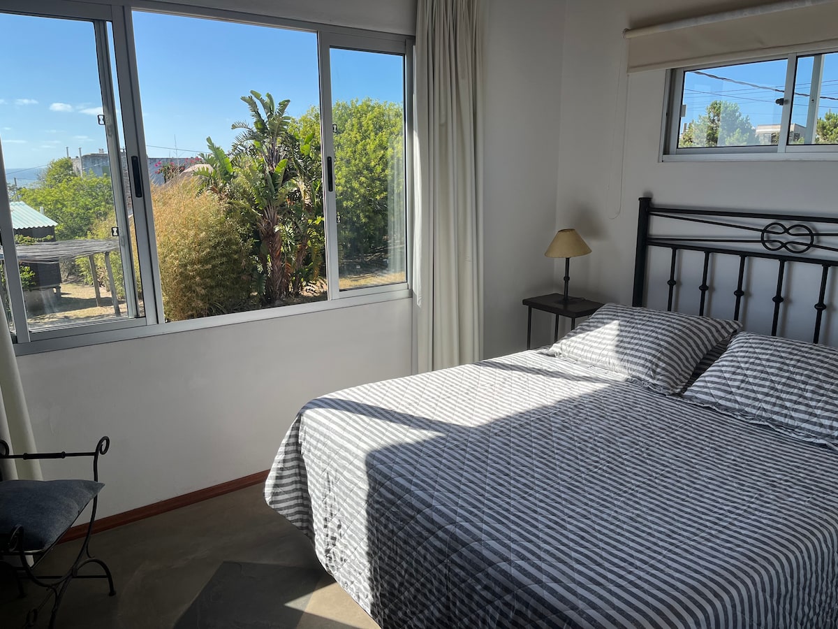 Cabaña para 2 personas.Pequeño complejo de 3 cabañas,ubicado a 2 cuadras de Playa la Viuda y lejos del ruido.Rincon intimo y tranquilo con vistas la atardecer y noches plagadas de estrellas.Entorno con planta nativas y variedad de pajaros.Ambiente distendido alrededor de la piscina.Wifi(fibra optica)y estacionamiento cubierto.