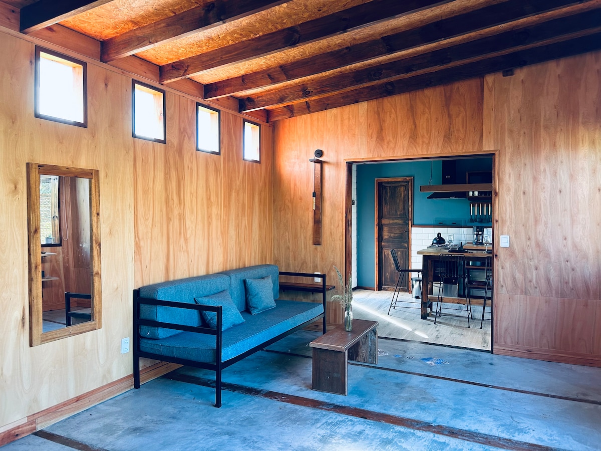 Casa tipo estudio a estrenar con un estilo rústico-industrial que ofrece un lugar cálido, espacioso y funcional. Muy bien equipada para que disfrutes tus vacaciones. Zona muy tranquila. Ideal para parejas y parejas con un peque. Muy buena conexión a internet para trabajo remoto. Aire acondicionado y estufa a leña. Estamos a 3 cuadras de la principal de La Pedrera y a 8 de la playa. Incluimos ropa de cama y toallas.
