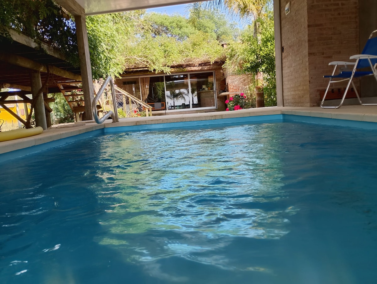 Espacio único con piscina climatizada,rodeado de naturaleza y paz. Barbacoa espaciosa con parrillero, horno a leña, estufa,baño, tv 55' ,lavarropas, totalmente equipada. Pegola con dec.Cuenta con 3 dormitorios,3 baños con ducha. Aire acondicionado en 2 dormitorios ,con tv por cable. Dec, pergola y mirador con vista al arroyo, desde donde se divisa la parte de la Laguna. El alojamiento cuenta con bote para uso de los huéspedes,para navegar por el arroyo, hay chalecos salvavidas y un kajak