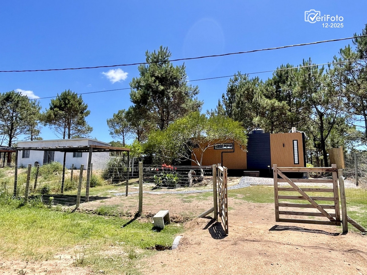 La unión del campo,y la playa ,hacen de este lugar un paraíso único . Ruta 10 km 250 a metros del mar está la Eco Casa Conteiner color naranja sustentable,sostenible,y natural. Ideal para parejas! Cerca del Cabo Polonio y La Pedrera .