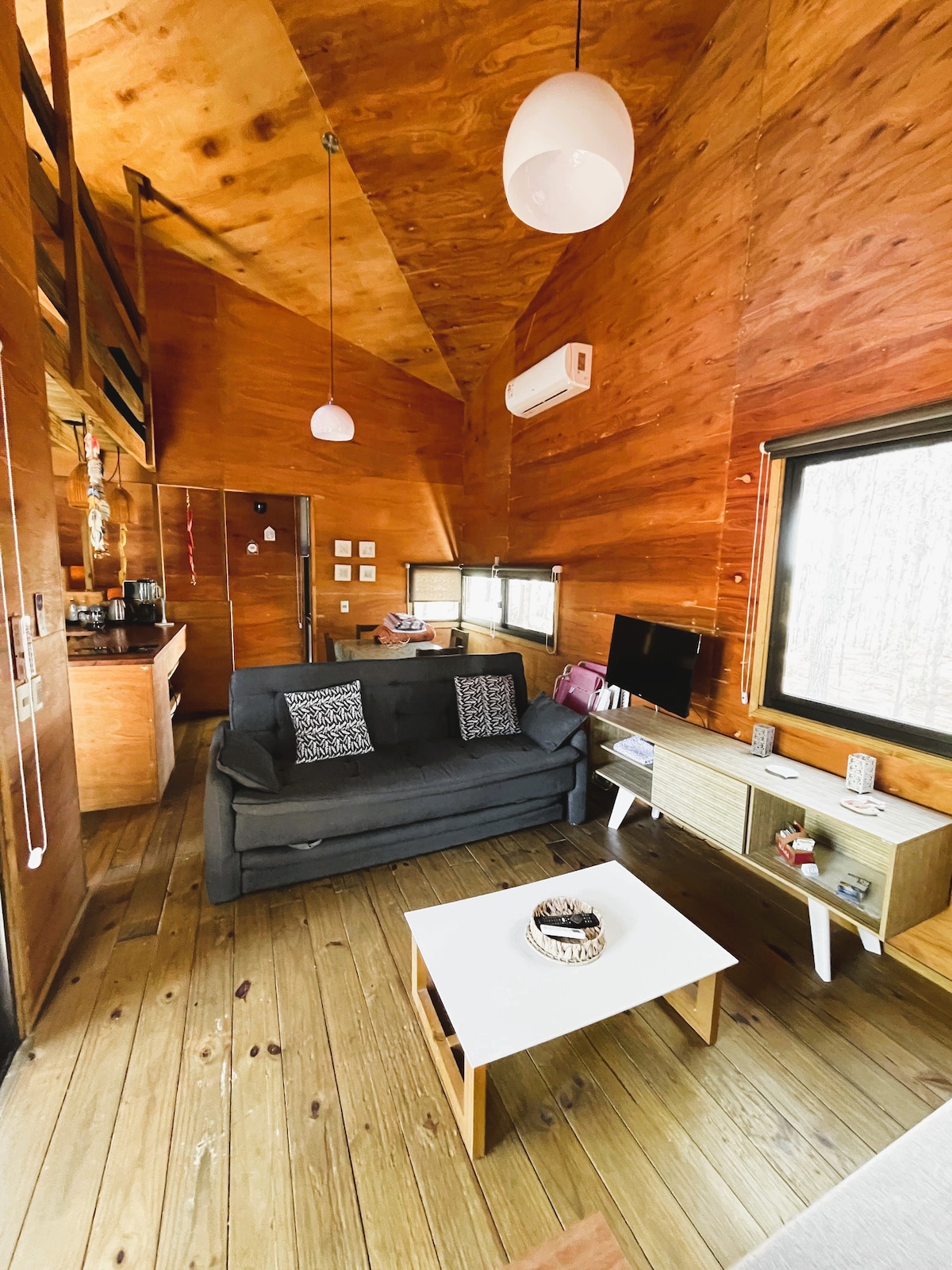 La oveja negra, tiny house ubicada en el monte de pino maritimo de Santa Isabel,con grandes ventanales para ver los mejores atardeceres que el horizonte ofrece. Su techo verde transitable te transporta el campo bajo tus pies. Terminada el 29 de diciembre de 2019