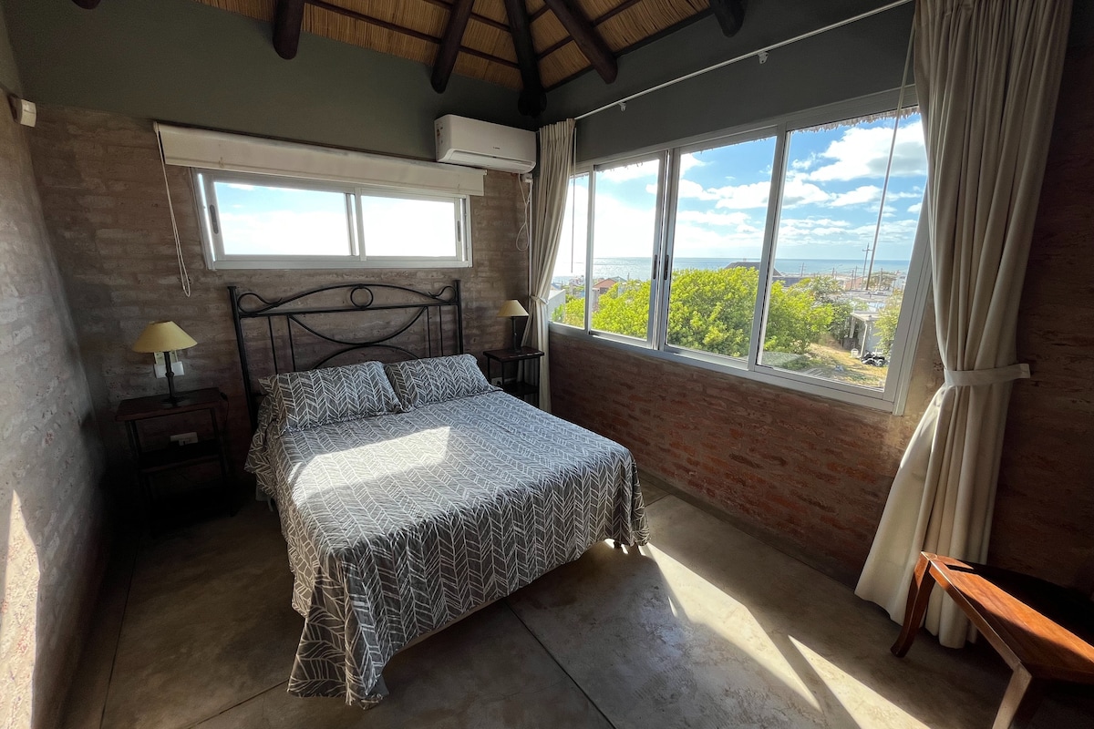 Ubicada frente al mar. Una vista privilegiada que permite ver al mar en su totalidad y un bosque hermoso al mismo tiempo. Una de las cuatro casitas que se encuentran en el predio. Nos gusta llamarlas "Las TATETI". Una casita de tamaño perfecto para viajar de a dos y disfrutar de la tranquilidad de Santa Isabel. Cuentan con cocina-comedor completa, baño privado y una cama súper cómoda. Desde el deck de madera pueden observar el mar.