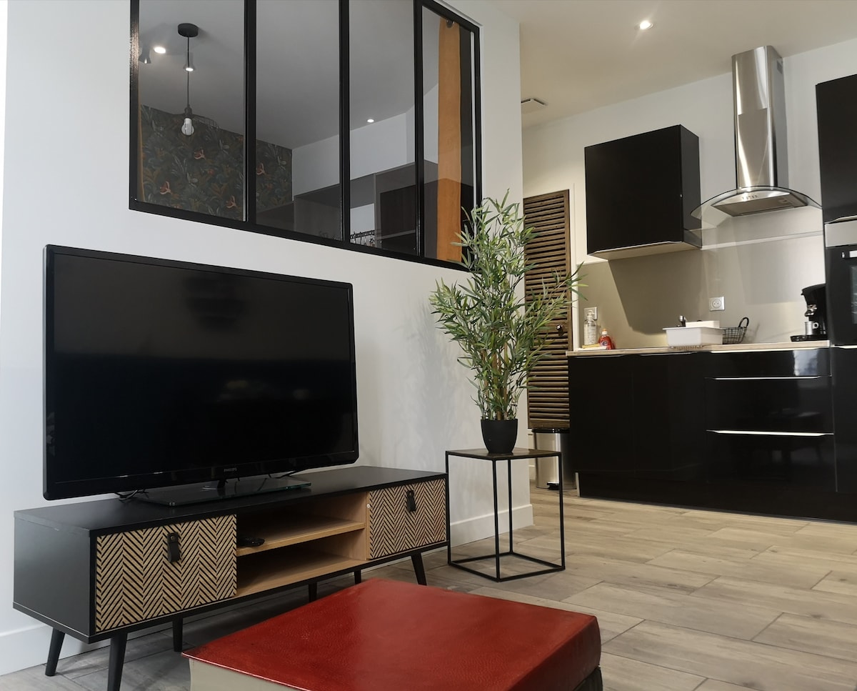 Venez découvrir notre gîte « le BIS ». Espace indépendant, confortable, neuf et moderne, avec patio, pour 1 pers seule ou 1 couple, proche centre ville. Ses 28M2 offrent : une cuisine équipée salon, une chambre avec placard et salle d'eau avec douche à l'italienne, wc séparé. Vous saurez apprécier selon les saisons le plancher chauffant ou rafraîchissant.Nous vous proposons un plus...le SPA(utilisable de 13h et 21h en juillet et août) pas d’accès au spa si demande de baisse de prix .