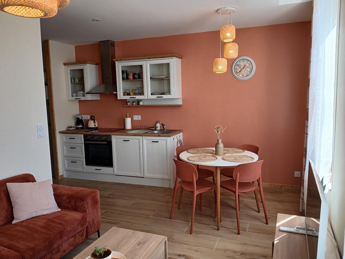 Chers curistes et chers voyageurs, venez poser vos valises le temps de quelques nuits dans cet agréable studio parfaitement aménagé. Parmi ses atouts: neuf, bien équipé et décoré avec soin, une vraie cuisine, un coin nuit distinct et chaleureux, une literie de qualité, un joli petit extérieur intimiste... Nous sommes enfin des superhôtes reconnus avec plus de 450 commentaires élogieux pour d'autres biens. Faites nous confiance! Au plaisir de vous accueillir prochainement !!