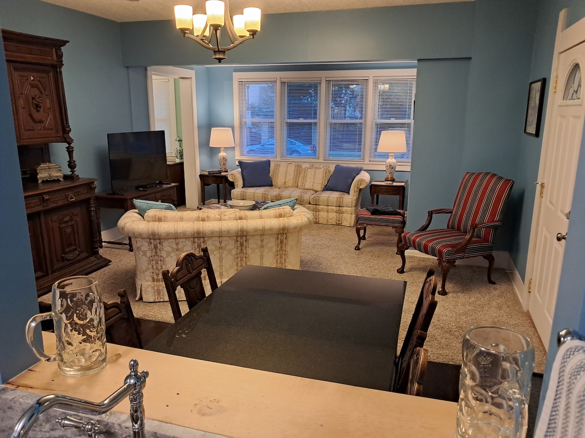 • Enhanced cleaning protocols due to COVID • Fully renovated apartment in summer 2018 • Brand new kitchen in March 2026 • 650 square feet • Upstairs apartment in quiet 4plex • Free off-street parking • 5 blocks north of Mayo Clinic • Walk-in tiled shower • Queen bed • Oversized power recline La-Z-Boy chair • Reclining leather loveseat • 43" Smart TV with DirecTV/cable • High-speed WiFI — 300 MBPS • Shared laundry in the basement • Huge windows for tons of natural light