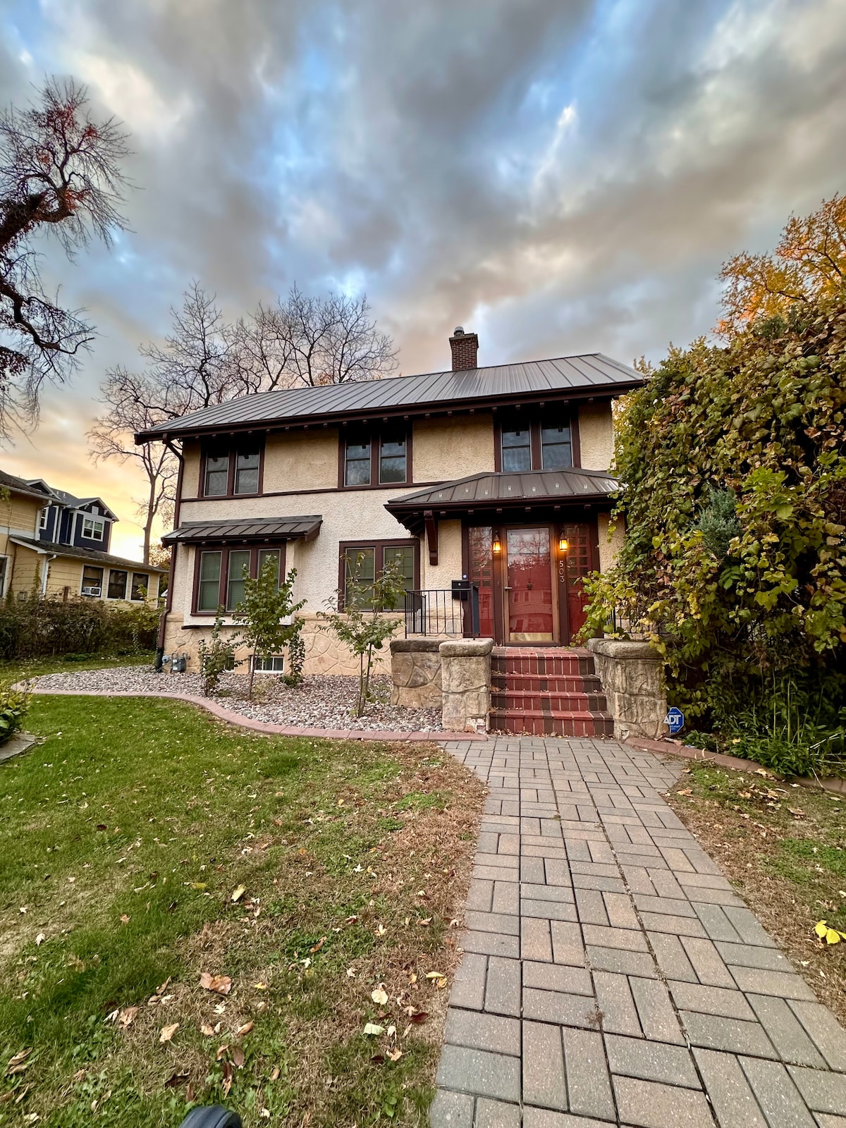 - 5 min walk to Mayo Clinic, St. Mary’s campus - 3 bedrooms, 3 bathrooms, and a loft - unique design with vaulted ceiling and skylights in the style of Frank Lloyd Wright, one of its kind in the whole neighborhood - two-car garage + another dedicated parking space outside - walkable and safe family-friendly neighborhood close to downtown and all amenities - outside front and back patios - fusball play table - dedicated workspace - high speed wifi - Apple TVs - washer and dryer