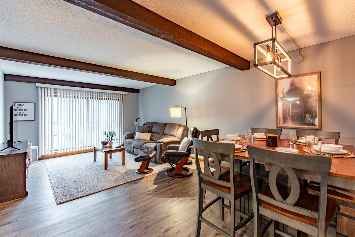 - 5 min walk to Mayo Clinic, St. Mary’s campus - 3 bedrooms, 3 bathrooms, and a loft - unique design with vaulted ceiling and skylights in the style of Frank Lloyd Wright, one of its kind in the whole neighborhood - two-car garage + another dedicated parking space outside - walkable and safe family-friendly neighborhood close to downtown and all amenities - outside front and back patios - fusball play table - dedicated workspace - high speed wifi - Apple TVs - washer and dryer