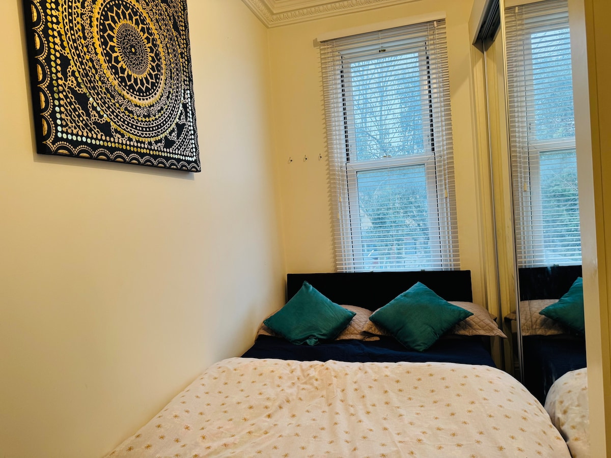 Little William is a 1 bedroom self contained lower ground floor flat in a Georgian House, 5 minutes walk away from the beach in Herne Bay. The flat is priced on two guests sharing. The bedroom has a double bed with super comfy mattress, in a quiet rear room. Lounge/dining area with TV, two single Ikea armchairs and a small sofa. Kitchen, bathroom with shower and a courtyard area with table and 2 chairs.